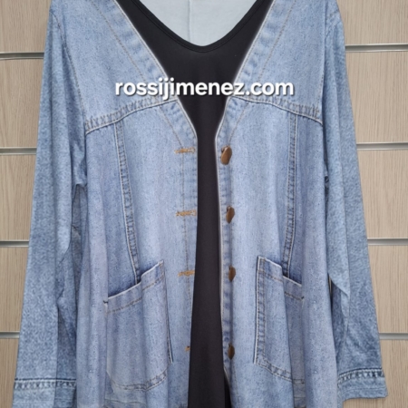 • Camiseta Maxi Impresión Cazadora Vaquera (Talla única 48 a 60 aprox.)