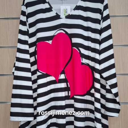 • Camiseta Maxi Impresión Rayas Corazones (Talla única 48 a 60 aprox.)
