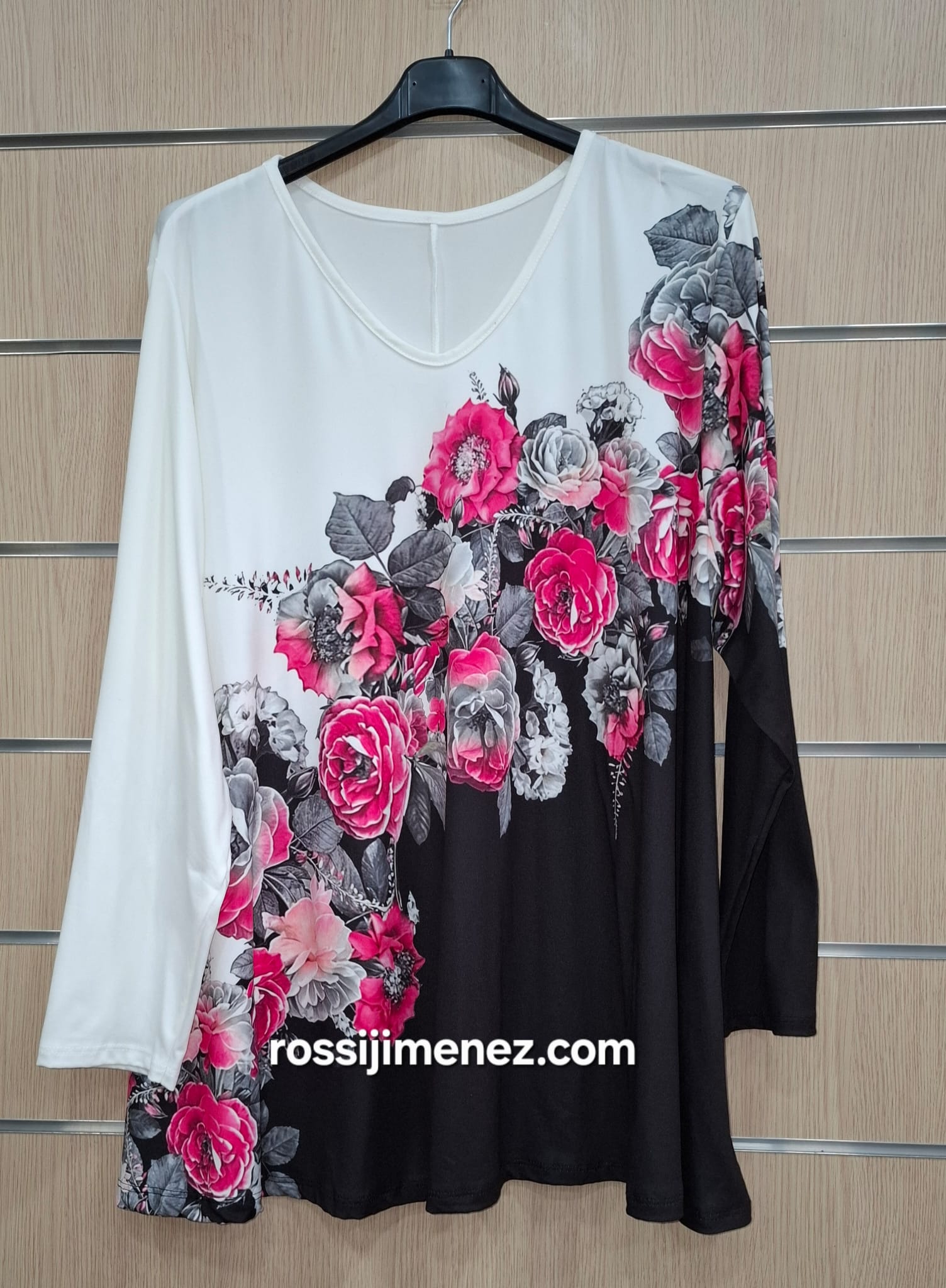 Camiseta Maxi Impresión Flores Rosas (Talla única 48 a 60 aprox.) - Imagen 2